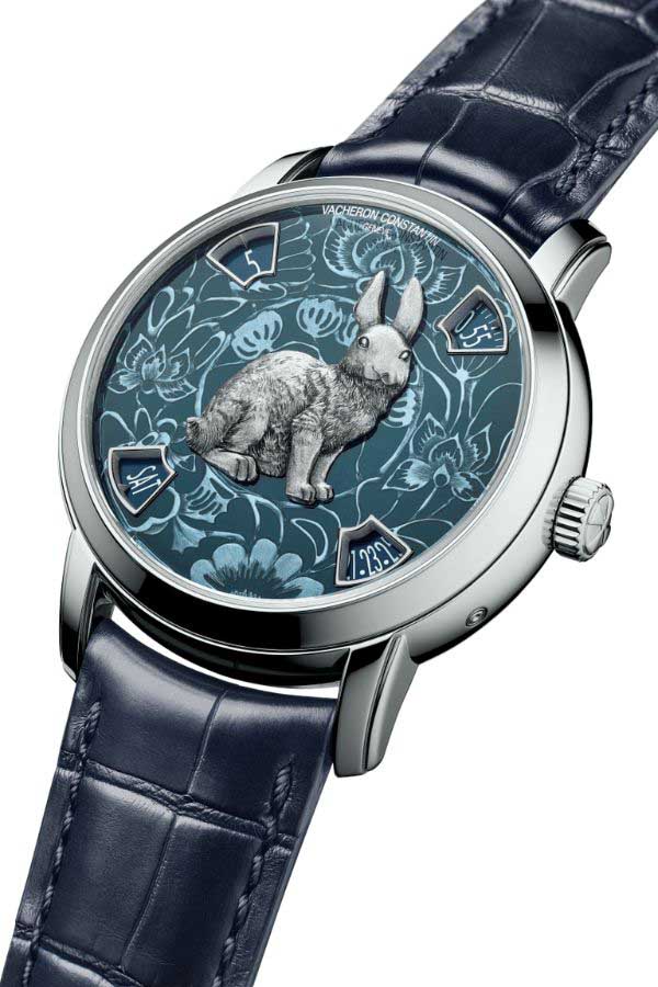 Nesta edição limitada a apenas nove peças por referência, o coelho surge gravado à mão em platina (no modelo com caixa em platina) ou em ouro rosa (para a versão em ouro rosa) e aplicado directamente no mostrador esmaltado que apresenta um elaborado motivo vegetal. O sofisticado Calibre 2460 G4 opera as indicações de horas, minutos, dia e data através das quatro aberturas do mostrador.