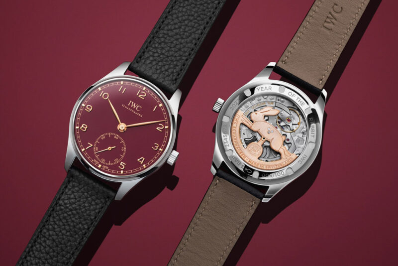 Esta edição limitada a 500 exemplares mantém o estilo do clássico Portugieser, mas destaca-se pelo mostrador invulgar, em cor de vinho com numerais e ponteiros dourados. No fundo da caixa, destaque para o rotor que assume a forma de um coelho.