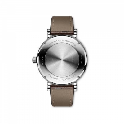 O Portofino Automático Pointer Date exibe uma caixa em aço inoxidável de 39 milímetros, um mostrador prateado, ponteiros e marcadores aplicados revestidos a ouro e ainda, uma pulseira em pele de bezerro castanha com sistema de troca rápida. Este modelo apresenta um submostrador analógico às 6 horas que conta com um ponteiro de indicação de data e que, por volta da meia-noite, salta para a nova data.