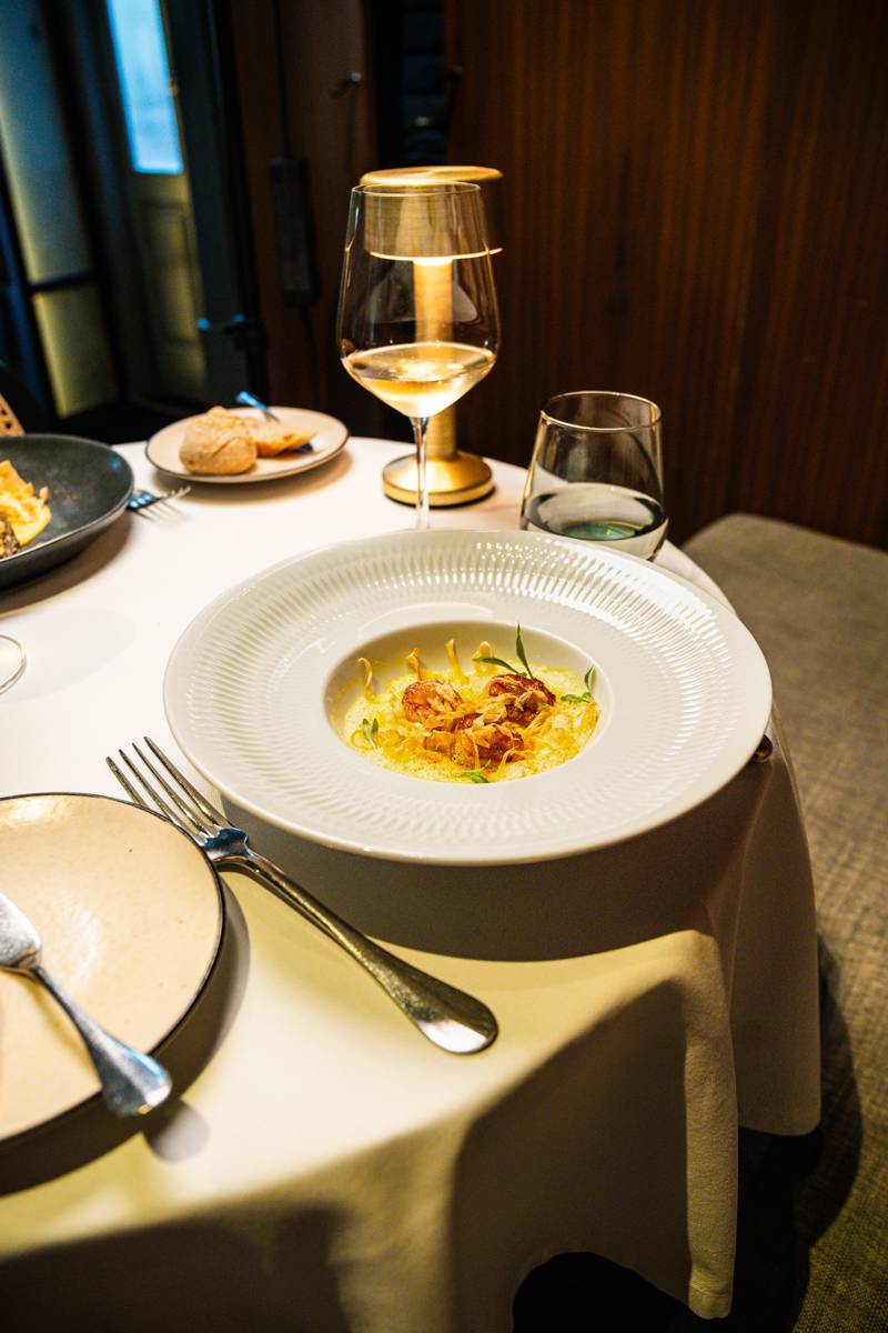A casa do século XIX onde o Cafeína se instalou foi alvo de uma reabilitação exemplar, primeiro por Paulo Lobo, com um projecto que marcou uma geração de restaurantes elegantes e urbanos, e mais recentemente por José Carlos Cruz, que redesenhou o espaço sem apagar a alma que sempre ali habitou. "Houve um cliente que disse uma coisa que nunca esqueci: 'Parece que nada mudou e tudo mudou'. E é isso mesmo. O segredo está em evoluir sem trair a essência", sublinha Vasco.