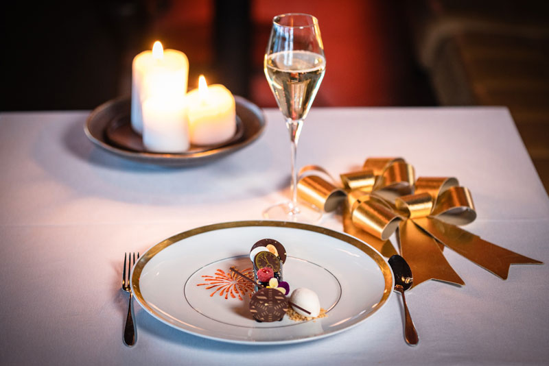 Esta proposta dá inicio com o amuse bouche, que será Foie Gras Caramelizado, Pera e Fava Tonka e, para entrada, o Royal de Crustaceos Defumados e Caviar Oscientra. O prato de peixe será Ballotine de Linguado, Compota de Alho Francês e Dieppoise de Bivalves. Quanto ao prato de carne, podemos contar com a Vitela Confit, Ragout de Cepes e Fondant de Salsifi e, para terminar, a sobremesa Dacquoise de Frutos Secos, Framboesa e Champagne completa esta experiência gastronómica de excelência.