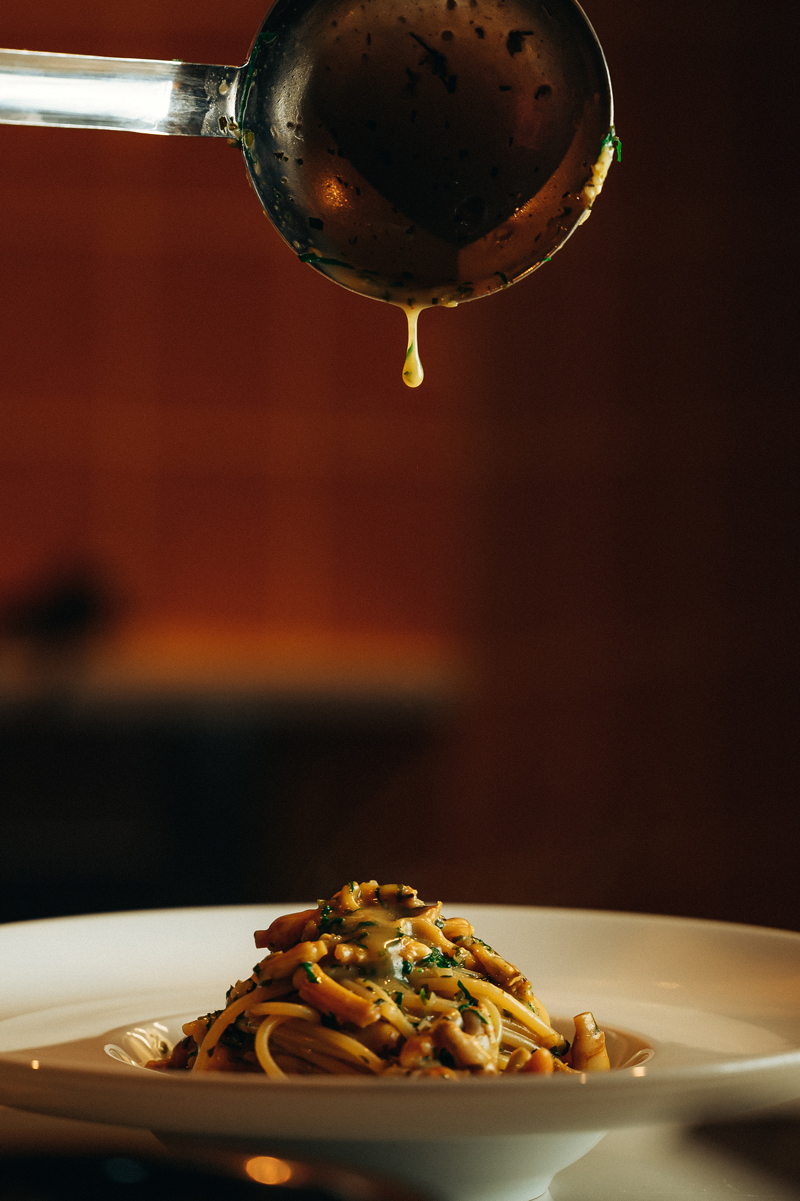 O menu é uma celebração da cozinha italiana, com destaque para as massas frescas feitas no local. Ao mesmo tempo, integra uma forte ligação com os produtos locais, em especial o peixe fresco e o porco preto alentejano. Um exemplo desta fusão de culturas é o arancini de alheira, que prova que a criatividade e o respeito pelas tradições podem coexistir em perfeita harmonia. Outra iguaria de destaque é a carbonara com pancetta portuguesa, um exemplo claro de como as influências regionais podem elevar um prato clássico.