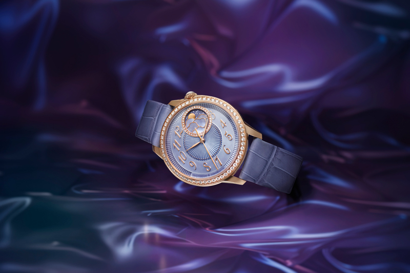 Também graças à parceria entre a Vacheron Constantin e a designer Yiqing Yin nasce o Égérie Fase da Lua, uma edição limitada exclusiva de 100 peças com o nome de Yiqing Yin gravado no fundo da caixa. Com uma caixa de 37 mm em ouro rosa e uma luneta engastada de pedras preciosas, os relógios mantêm os códigos estéticos da coleção. Esta edição especial oferece ainda três braceletes intercambiáveis. O mostrador em madrepérola exibe acabamentos polidos e decoração de dobras plissadas, com a indicação de fases da lua integrada de forma sutil na linha diagonal formada pelo logótipo Vacheron Constantin e pela coroa.