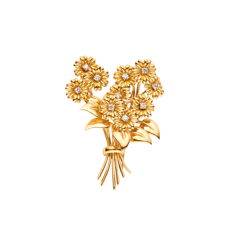 A primeira flor surgiu na Maison em 1907, na pregadeira Marguerite. Já os bouquets só apareceram na década de 1920, representados em peças de arte com joias. As corolas volumosas surgem na década de 1930, engastadas com diamantes ou pedras coloridas, unidas por uma fita preciosa e, por vezes, acentuadas com folhas grandes em ouro com polimento espelhado. Fascinada pela frescura da flora, da natureza campestre e dos jardins verdejantes, a Maison recriou os seus tons e formas em figuras como malmequeres olho-de-boi, prímulas e margaridas comuns. As pétalas em forma de coração, introduzidas na década de 1940, em cigarreiras e caixas de comprimidos, foram depois adotadas para uma pregadeira Trèfle em 1954. As criações Frivole acabam por surgir em 2003, com corolas em ouro polido ou em pavé de diamantes.