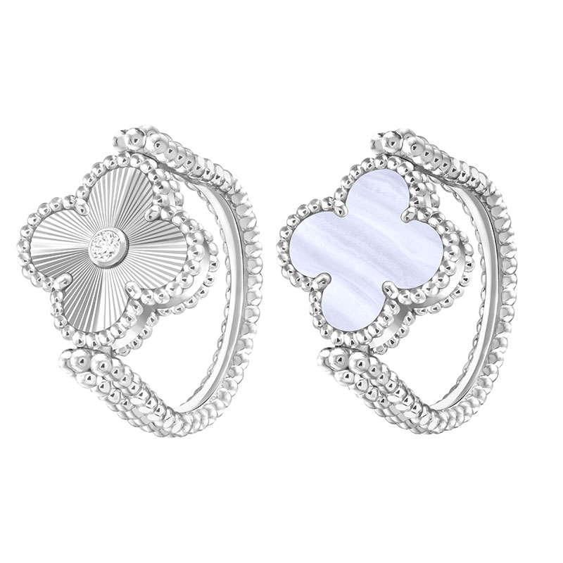 Símbolo eterno da sorte e da elegância, a colecção Alhambra revela uma nova expressão de versatilidade e brilho. As suas mais recentes criações — colares transformáveis Magic Alhambra, anéis reversíveis Vintage Alhambra e o relógio Sweet Alhambra — reinventam o ícone de 1968 com uma delicada harmonia de materiais, cores e luz.