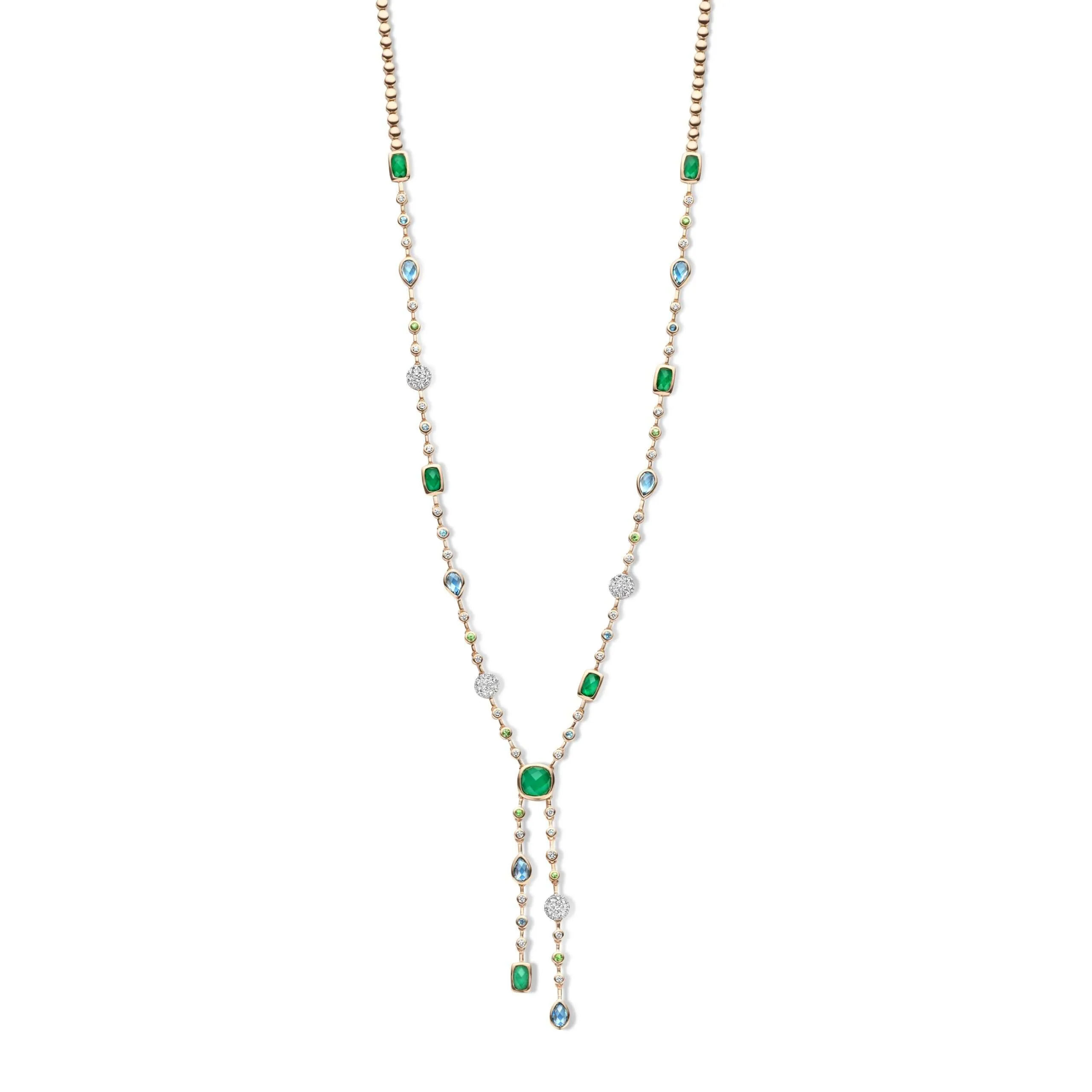 Colar Ouro Rosa, Esmeraldas,Topázios Azuis e Diamantes