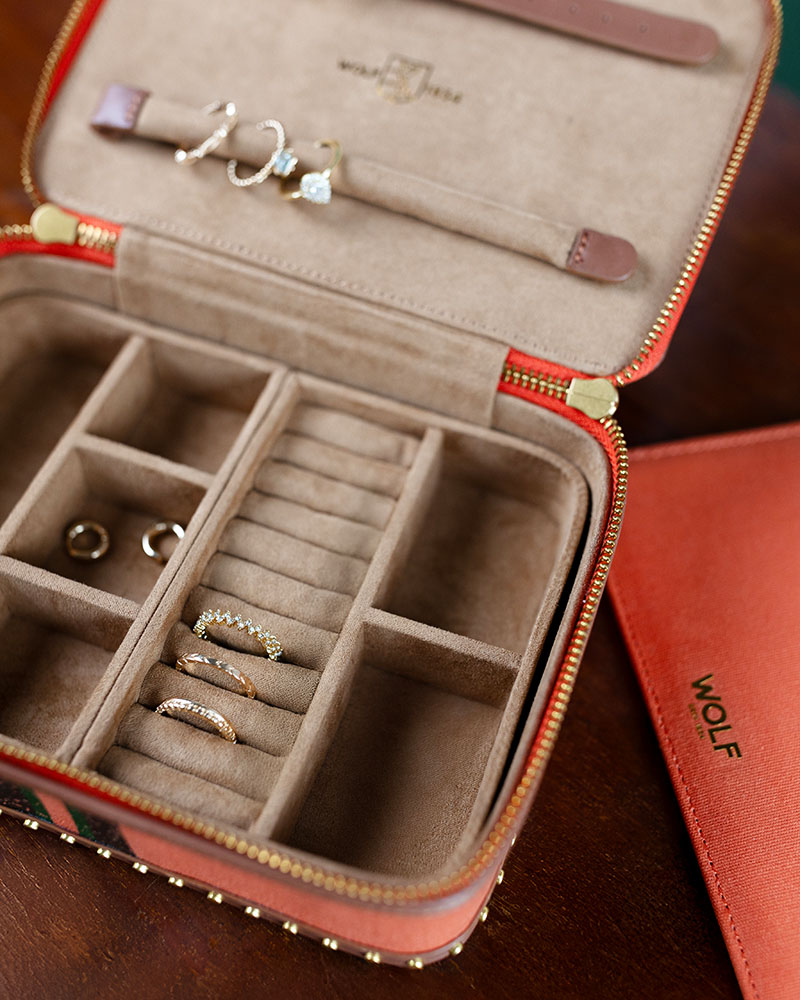 No interior, os compartimentos forrados com Ultrasuede e tratados com LusterLoc™ garantem organização e protecção, preservando o brilho das jóias ao longo do tempo. Criada para acompanhar o quotidiano ou grandes viagens, a colecção Ida traduz a visão da Wolf de unir legado, design e funcionalidade num objecto de desejo.