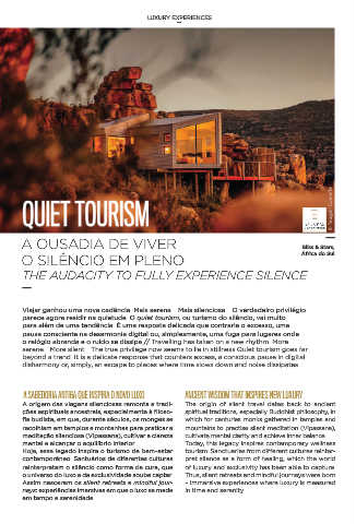 parece agora residir na quietude. O quiet tourism, ou turismo do silêncio, vai muito