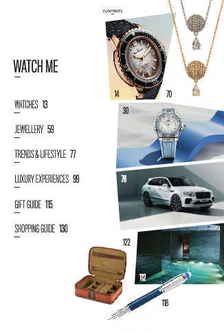 CONTENTS WATCH ME _ 14 70 WATCHES 13 30 _ JEWELLERY 59 _ TRENDS & LIFESTYLE 77 _ LUXURY EXPERIENCES 99 78 _ GIFT GUIDE 115 _ SHOPPING GUIDE 130 _ 122 112 114 118