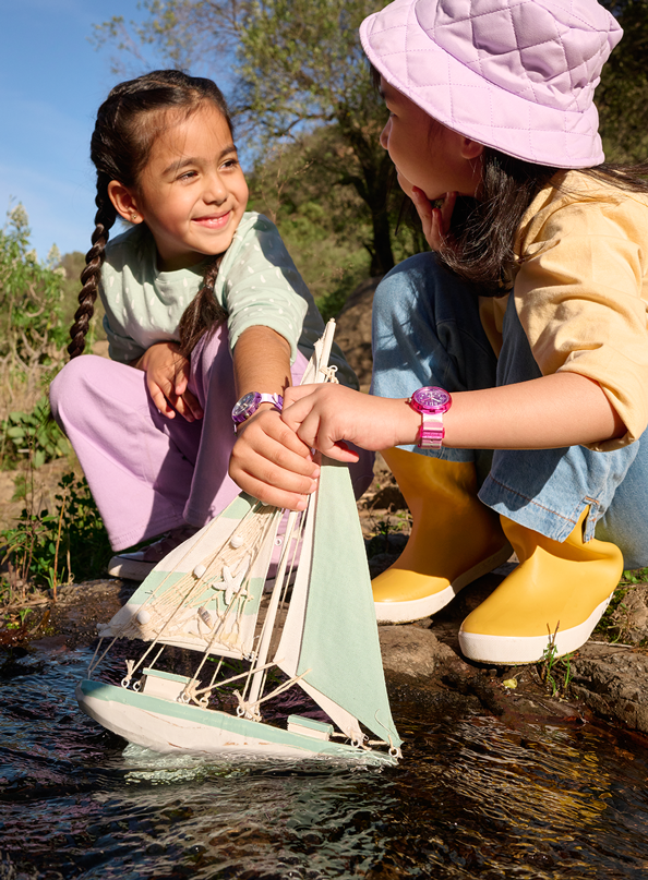 Toda a coleção mantém um registo dos estilos de vida repletos de ação das crianças e das suas capacidades para ver as horas. Estes relógios swiss-made ganham facilmente em termos de estilo.