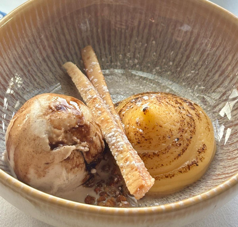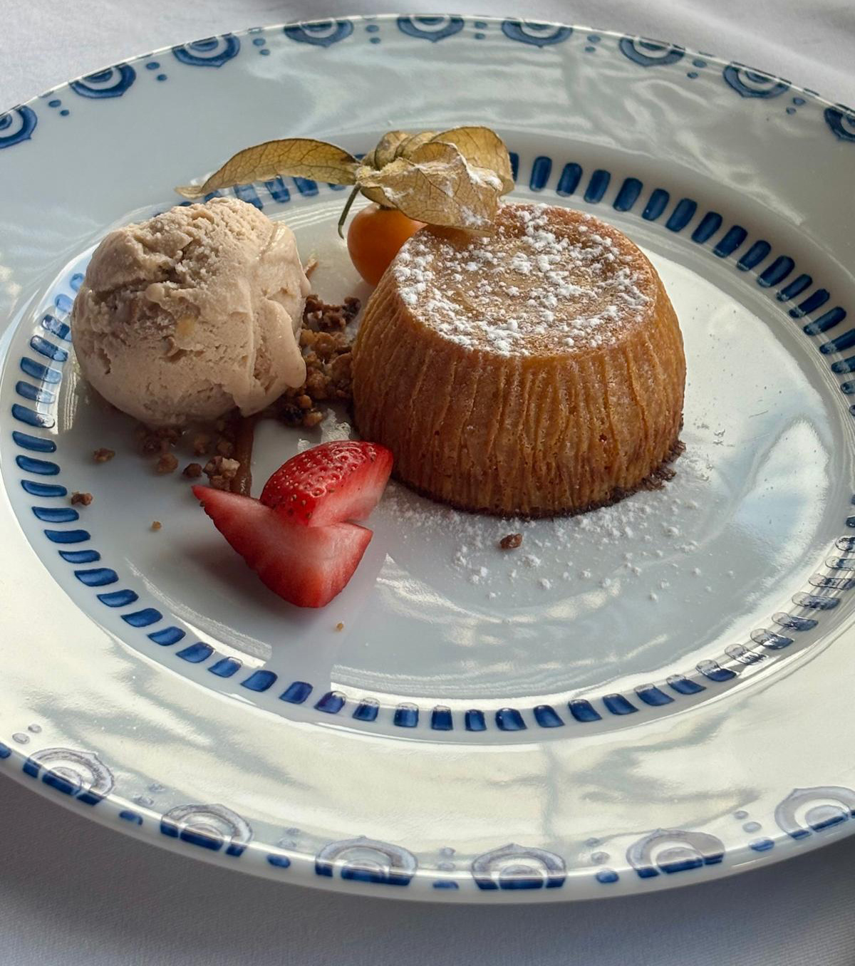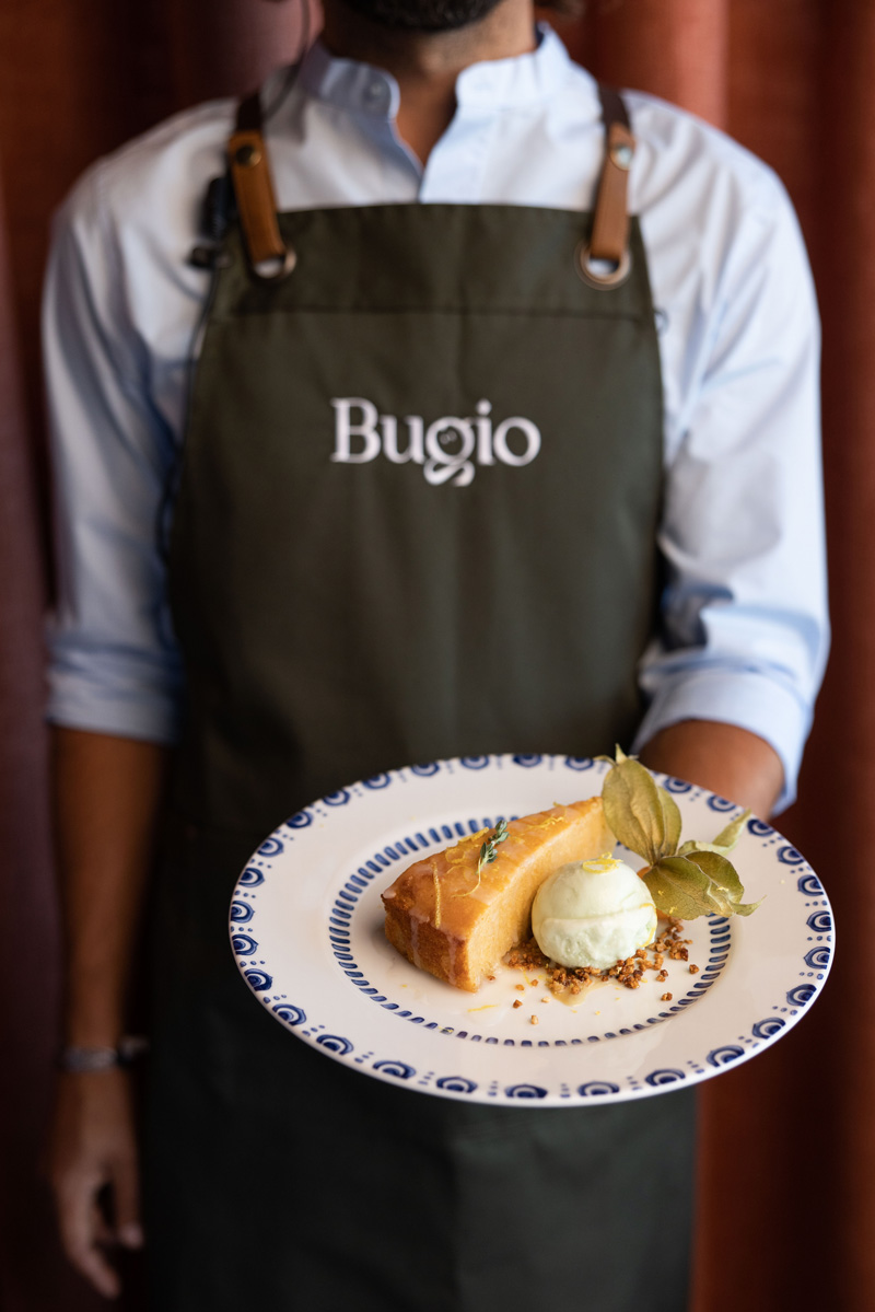 Nas sobremesas o Bugio opta por propostas clássicas: lemon cake com gelado de citronella, petit gâteau de caramelo com gelado de avelã e pastel de nata à colher, numa interpretação simples e eficaz.