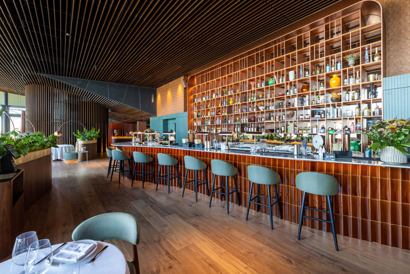 O conceito cruza restaurante e bar e inspira-se nas cozinhas do sul de Itália, da Grécia, do Algarve e de Ibiza, numa leitura mediterrânica contemporânea, pensada para partilhar. O espaço foi desenhado pelo arquitecto Rodrigo Machado Soares, em parceria com a agência NIU, com uma decoração que privilegia materiais naturais e uma ligação constante ao exterior. A iluminação, assinada por Joana Forjaz Lighting Design, acompanha essa lógica, adaptando-se aos diferentes momentos do dia.