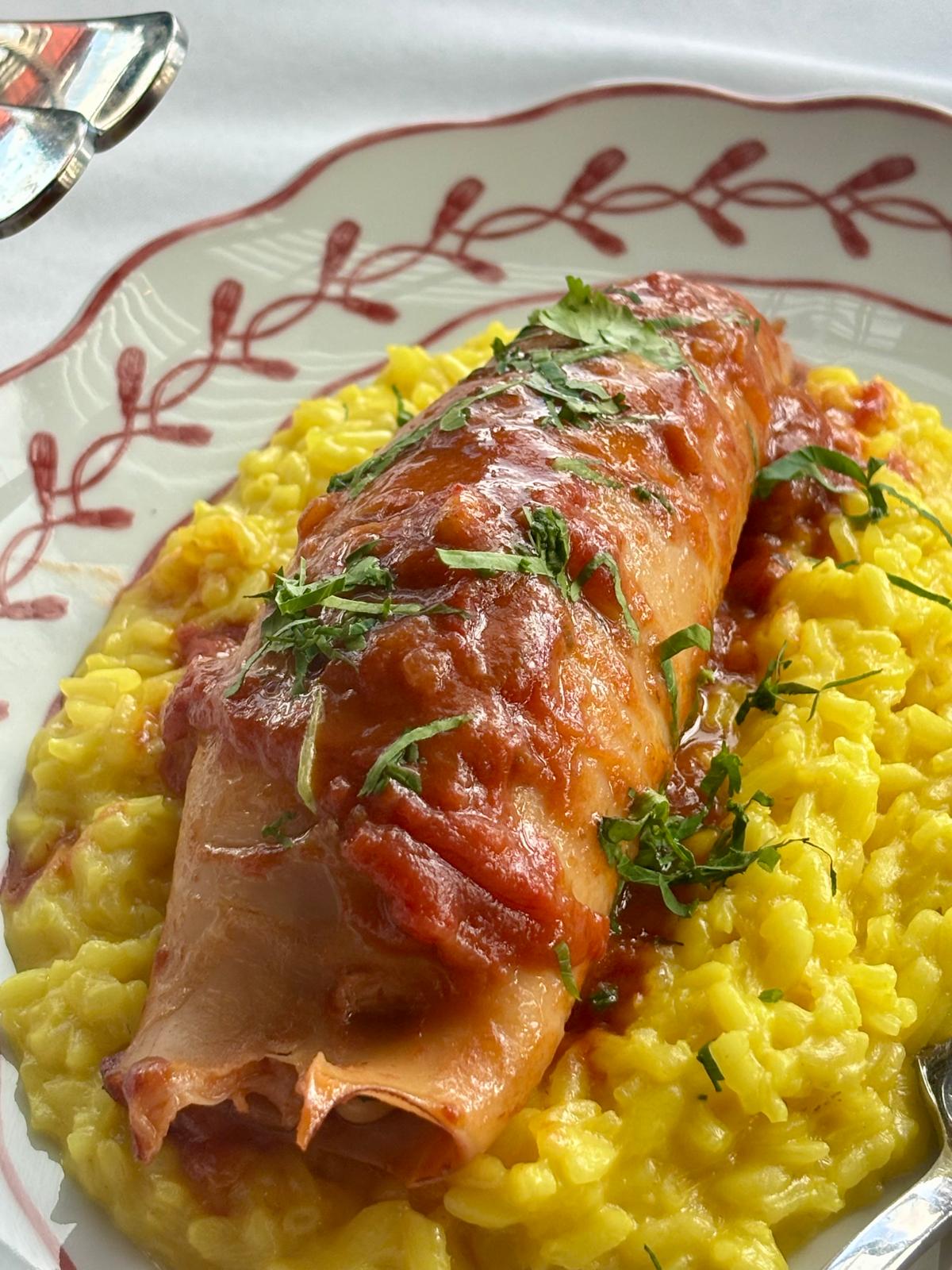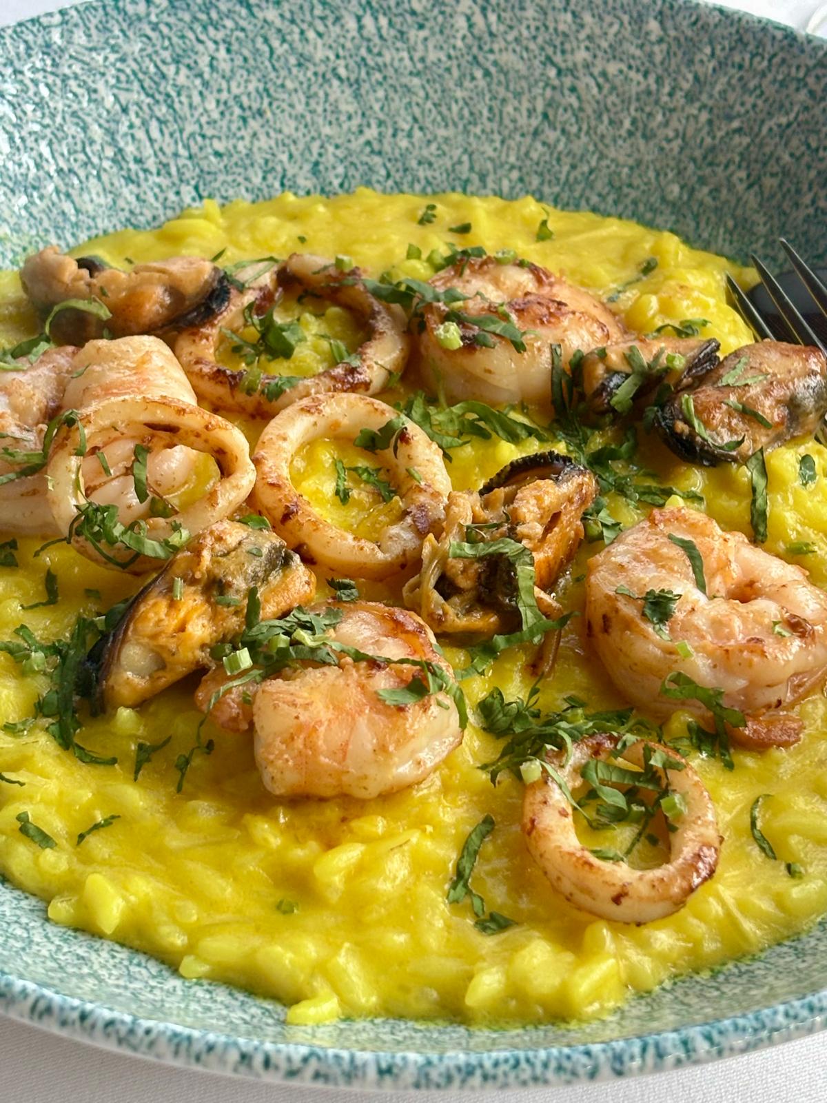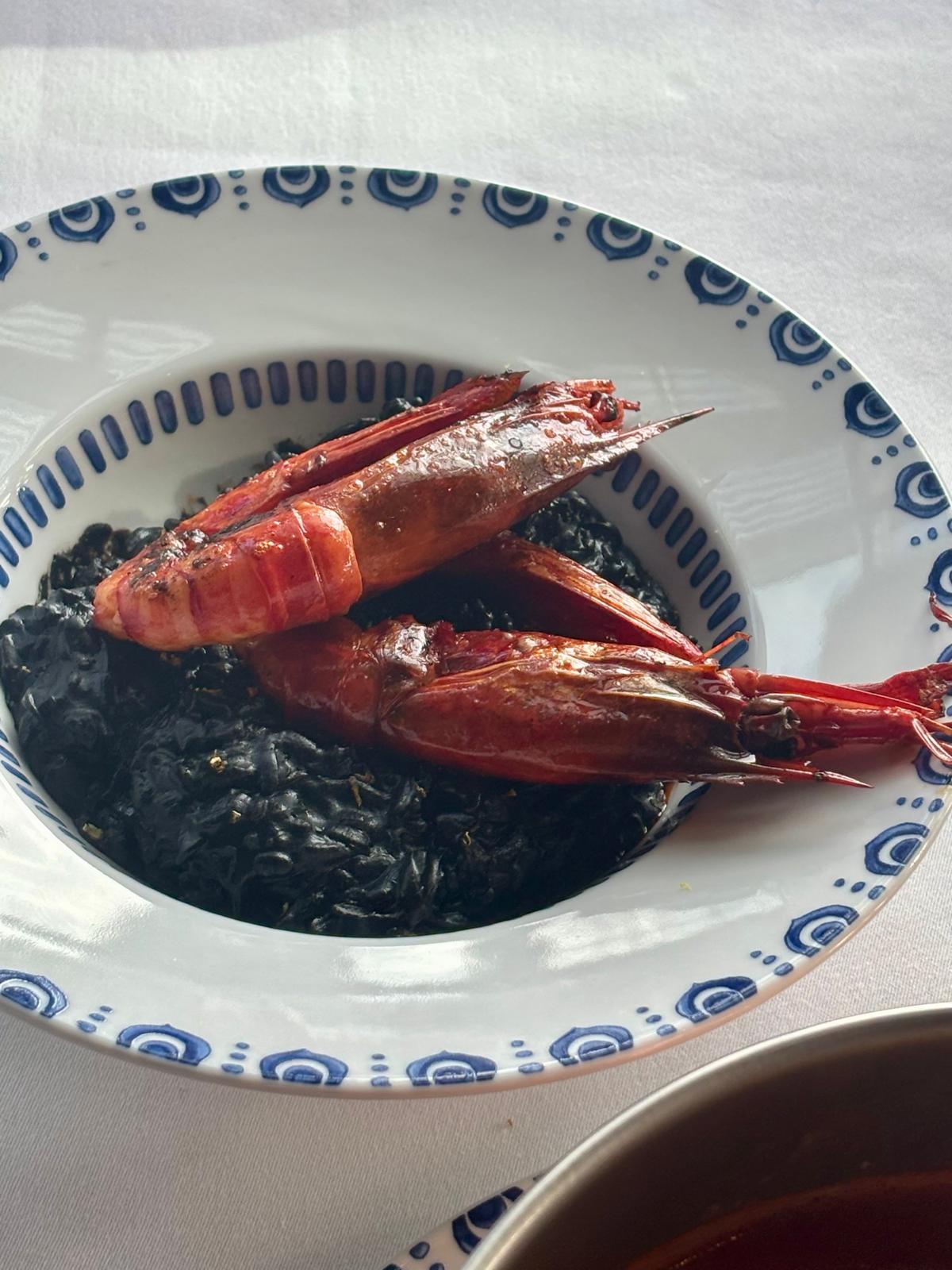 Nos pratos principais, o risotto do mar apresentou-se cremoso e bem ligado, enquanto o risotto alla milanese com lula recheada trouxe um perfil mais intenso e estruturado. Entre as massas, os ravioli de ricotta e limão destacaram-se pela frescura e pela acidez controlada. A massa à Bugio, com peixe e marisco, confirma a vocação do restaurante para pratos pensados para dividir à mesa. Já o arroz negro com carabineiros assume-se como um dos pratos mais marcantes da carta, pela intensidade e presença.