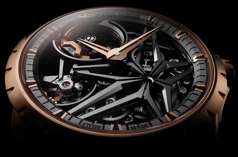 Com desenvolvimentos técnicos concebidos para aumentar a reserva de marcha para 72 horas, o novo Excalibur Monobalancier apresenta um micro-rotor optimizado de modo a minimizar as vibrações, produzido em ouro rosa com acabamento em tungsténio com uma gravação do monograma da Roger Dubuis.