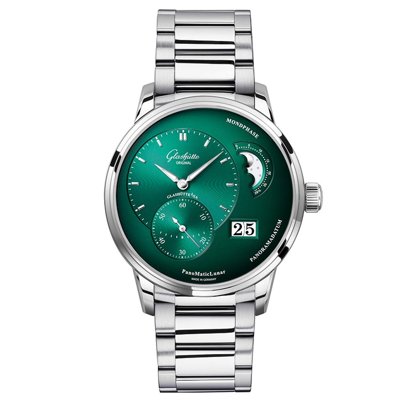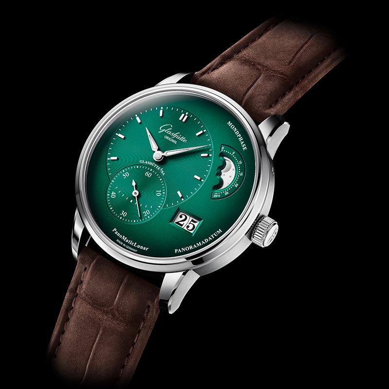 O PanoMaticLunar é o best-seller da marca, sendo o relógio que melhor a define, exibindo uma face assimétrica bem equilibrada que inclui um mostrador de horas e minutos descentrado, um submostrador de pequenos segundos aninhado na posição das seis horas, a Data Panorâmica e uma indicação de fases da Lua peculiar.
