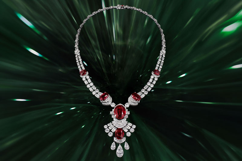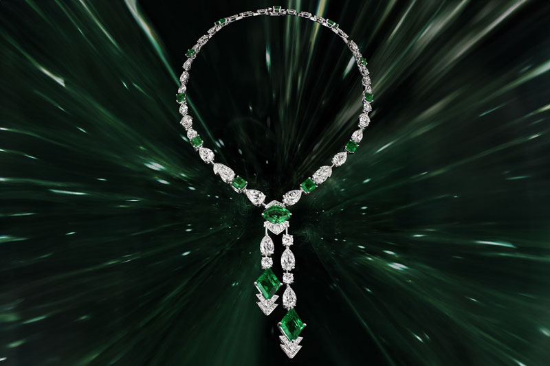 A nova colecção é composta por 28 peças de alta joalharia com esmeraldas, rubis, safiras e diamantes amarelos e brancos. As pedras preciosas são engastadas em ouro branco, platina ou ambos. As peças de destaque incluem um colar de esmeraldas e diamantes com três esmeraldas colombianas em forma de losango de quatro quilates incrivelmente raras, complementado por um par de brincos, três pulseiras e um anel, todos com esmeraldas e diamantes colombianos.