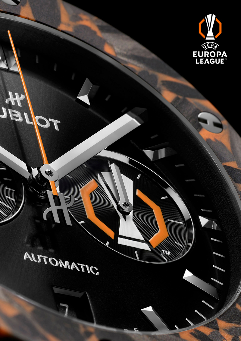 A ligação histórica da Hublot ao futebol é celebrada com o Classic Fusion Chronograph UEFA Europa League, uma edição limitada a 50 exemplares.