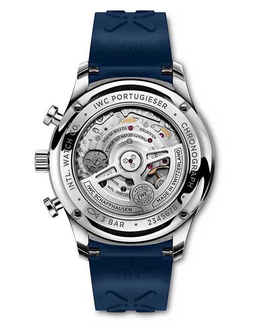 Já o Portugieser Cronógrafo está disponível numa caixa de 41 mm, também em aço, com pulseira de borracha azul e é movido pelo calibre cronógrafo automático 69355, com 46 horas de reserva de marcha.