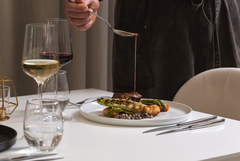 O chef Diogo Rocha, distinguido com uma Estrela Michelin, preparou um menu de oito momentos, que destaca ingredientes de alta qualidade e sabores autênticos da região. A experiência gastronómica é acompanhada por uma harmonização exclusiva de vinhos da Quinta de Lemos. O restaurante, situado no topo de uma colina, oferece uma vista deslumbrante sobre os vinhedos, criando o cenário perfeito para uma noite romântica. O menu está disponível por 230€ por pessoa.